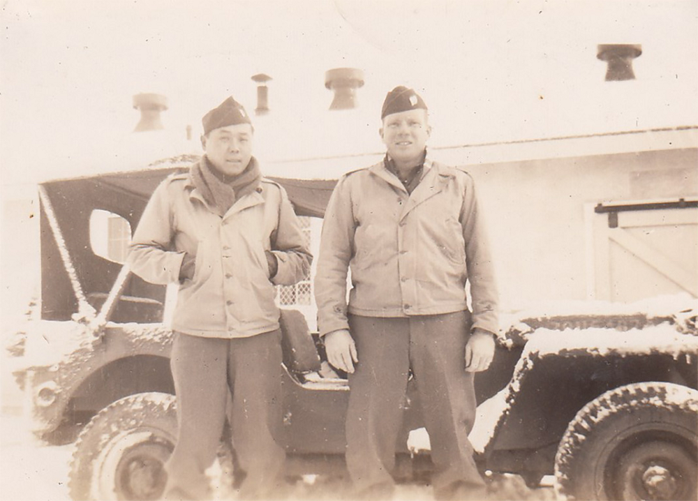 The battalion deployed for combat in the European Theater, landing in Salerno, Italy in September 1943. In Italy, Fukuda’s courage and leadership quickly distinguished him. At Hill 1109, trapped by enemy fire, he ordered his men to dig in, then ran alone through snow and gunfire to bring reinforcements.
