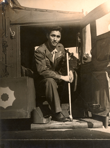 CPL Kisuke Richard Kusaka, Company A, was a sansei whose grandparents and parents worked as sugar laborers in Papaikou, Hawaii. Quitting public school after the 8th grade, he worked in the fields to support the growing Kusaka family. Drafted on Nov. 14, 1941, he was stationed at Schofield Barracks when Japan attacked Pearl Harbor. He put on his uniform and reported for duty. An officer took one look at him and put him in the stockade, where he was joined by other Japanese American soldiers.